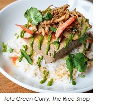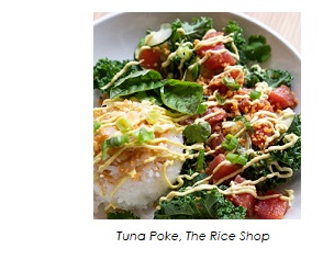No matter the concept, Anthony is known for making as much of each dish as possible from scratch. For example, at Lox, Stock, and Brisket he smokes his own meats, pickles cucumbers and makes the sauces. When that is the priority, โit all comes down to using the best possible quality ingredients,โ Anthony emphasized. Open for breakfast and lunch since April 2018, Lox, Stock and Brisket focuses on deli sandwiches, such as The Upper East Side (brisket, cucumbers, dill, mustard, rye) and Ridge Lane (lox, cream cheese, cucumbers, dill, red onion, bagel), to name a couple. Sides like Matzo Ball Soup, Potato Salad and Coleslaw round out the menu, and meats are also sold by the pound. On the other hand, The Rice Shop, open since October 2018, serves lunch and dinner, offering creations like BBQ Pork Belly, Tuna Poke, and Tofu Green Curry, all served on a bed of rice. To make it even more special, the Ridge Lane and Big Boro sandwiches from Lox, Stock and Brisket make a guest appearance at The Rice Shop every Sunday during brunch.