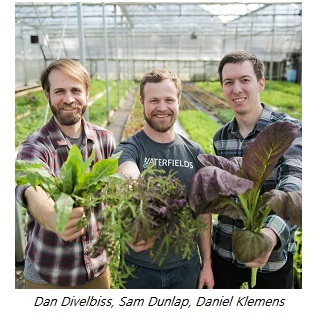 Founded in 2013 by four friends, Dan Divelbiss, Daniel Klemens, Sam Dunlap and Ben Matthews, Waterfields was started based on a need the young entrepreneurs saw in their community. Klemens explains โWe had to do a lot of listening.ย One of the greatest successes we had was getting in the back of kitchens before we ever had product to sell.โ The result was a variety of crops that help chefs add powerful and unique flavors, sophisticated tastes and textures, as well as bright and bold presentation to the plate. As Klemens puts it โOur products enable chefs to meet their creative goals with dishes.โ On a more technical note, โUltimately, we grow things with the best market-ready technologies in ways that make the best sense for the product quality and consistencyโฆ [Chefs] can view their garnish as a meaningful ingredient as opposed to color confetti.โ