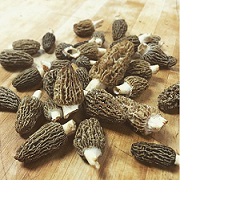 ย Resembling a honeycomb,ย Morelsย are wild mushrooms with caps made up of ridges and craters. Usually found in the Great Lakes region mid to late spring, both temperature and moisture levels needs to be optimal for the elusive morel to make its appearance. When the time strikes, look for morels in pastures or meadows by old trees that are dead or dying. Once found, cut the stem at an inch away from the cap, and cook before consumption, as they are toxic raw. When storing, good air circulation is key. If not preserving them for later use, keep them moist, but not soaking, for up to a week. They can also be dried, and later rehydrated. Morels have a deep, earthy, nutty flavor and a meaty, but tender texture. Sautรฉ them with butter for the most pristine taste, but morels are also great with eggs, in pasta or in a creamy soup or sauce, especially with asparagus or pork. Some prefer them lightly fried in flour, or stuffed with herbs and veggies or meat.