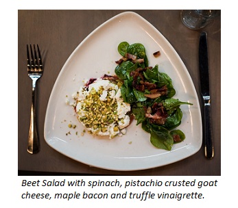 Nowadays, Georgetownโs menu reflects Greggโs culinary style by offering something for everyone. Whether itโs a multi-course meal, or just cocktails paired with an expansive list of happy hour appetizers, Gregg brings a blend of Mediterranean, Asian and Italian influence to Georgetown guests. Gregg states his culinary style is inspired by the talented chefs he worked with over the years. โI learned a lot from Italian chef Roberto Donna at the James Beard House, and from Carl Quagliata, while I was at Giovanniโs. I was also really into Morimoto [Japanโs Iron Chef sushi master],โ he reflects. Seasonal produce also plays a big role in Georgetownโs menu. Some highlights include a Beet Salad with Pistachio Crusted Goat Cheese, Maple Bacon and Truffle Vinaigrette, as well as a Grilled Herb and Balsamic Double Cut Pork Chop with Spinach and Cauliflower Gratin. Georgetown is also well known for their pizzas, with options like Maine Lobster with Manchego cheese, and Wild Mushroom with Prosciutto, Basil and Parmesan.