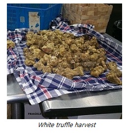 Although there are between 30 and 40 species of truffles, only 6 or 7 are edible. Of the edible varieties, truffles are classified by size, appearance and aroma. Joe expresses โAroma is the first and foremost quality characteristic.โ Then the texture, the firmer the better. Next, the length of season and amount that is available determines how rare the truffle is. The rarer the truffle, the more desirable, and a result, the more expensive it is. Based on these three characteristics, it is no surprise that the โKing of Trufflesโ is the White Winter Truffle. With its short season, very unique aroma and incredible difficulty in finding and harvesting, the price of this truffle can go up into the thousands. Further, while black winter and black summer truffles can be artificially cultivated, the white winter truffle is purely a product of nature.